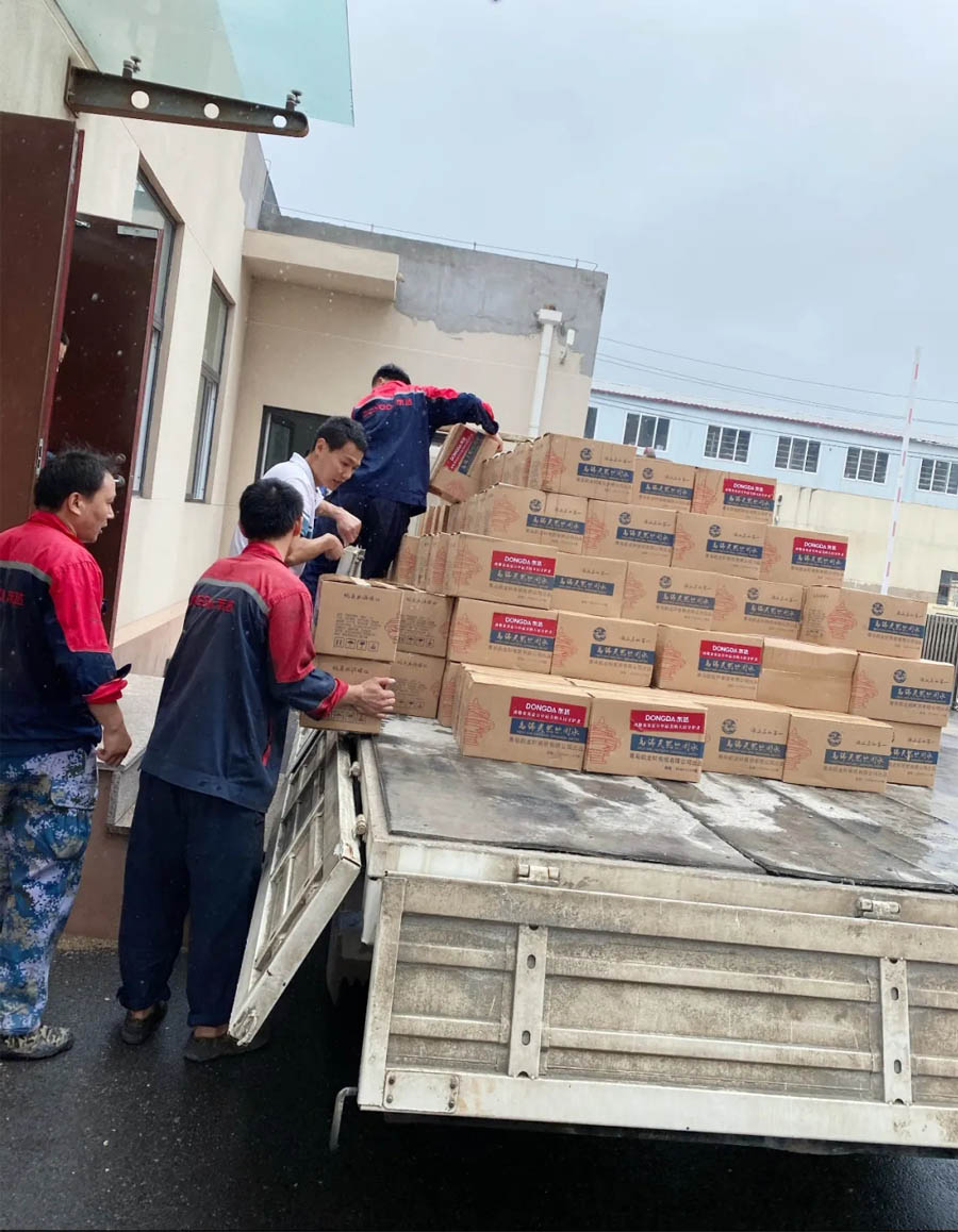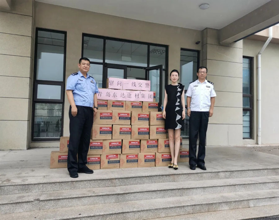 8月5日,集團(tuán)總經(jīng)理張娟帶隊(duì),將500箱礦泉水送達(dá)嶗山區(qū)交警大隊(duì)。